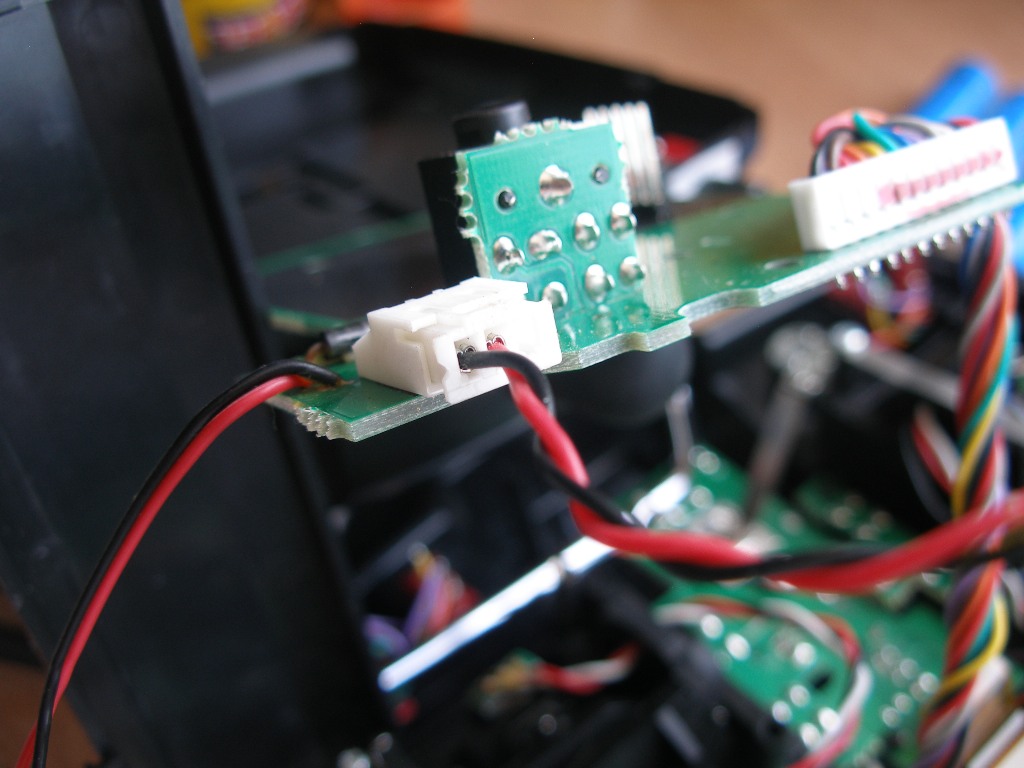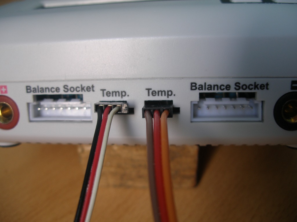 Otro refinamiento es un conector hembra tipo "Futaba" donde podemos conectar una sonda de temperatura que corta la carga si existe el peligro de pasar cierto umbral programable de temperatura.