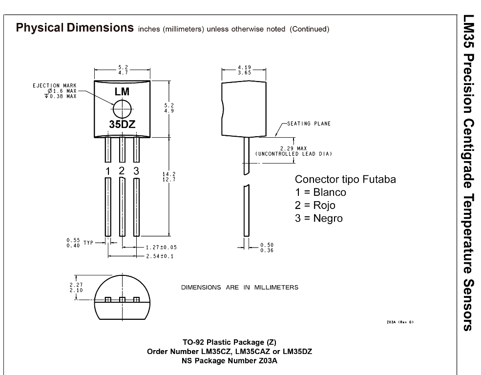 La conexión de la sonda de temperatura es un poco diferente y si la conectamos en la posición errónea si puede producirse una avería. Mirando el integrado de frente, es decir viendo las letras de su referencia, en el lado izquierdo hemos de conectar la señal, en teoría el cable blanco. En el centro el cable que toma el positivo, teóricamente de color rojo y en el otro extremo el cable negro que toma el negativo. Si lo conectamos invertido, invertimos la polaridad de alimentación. Observando la imagen debe desaparecer cualquier duda.