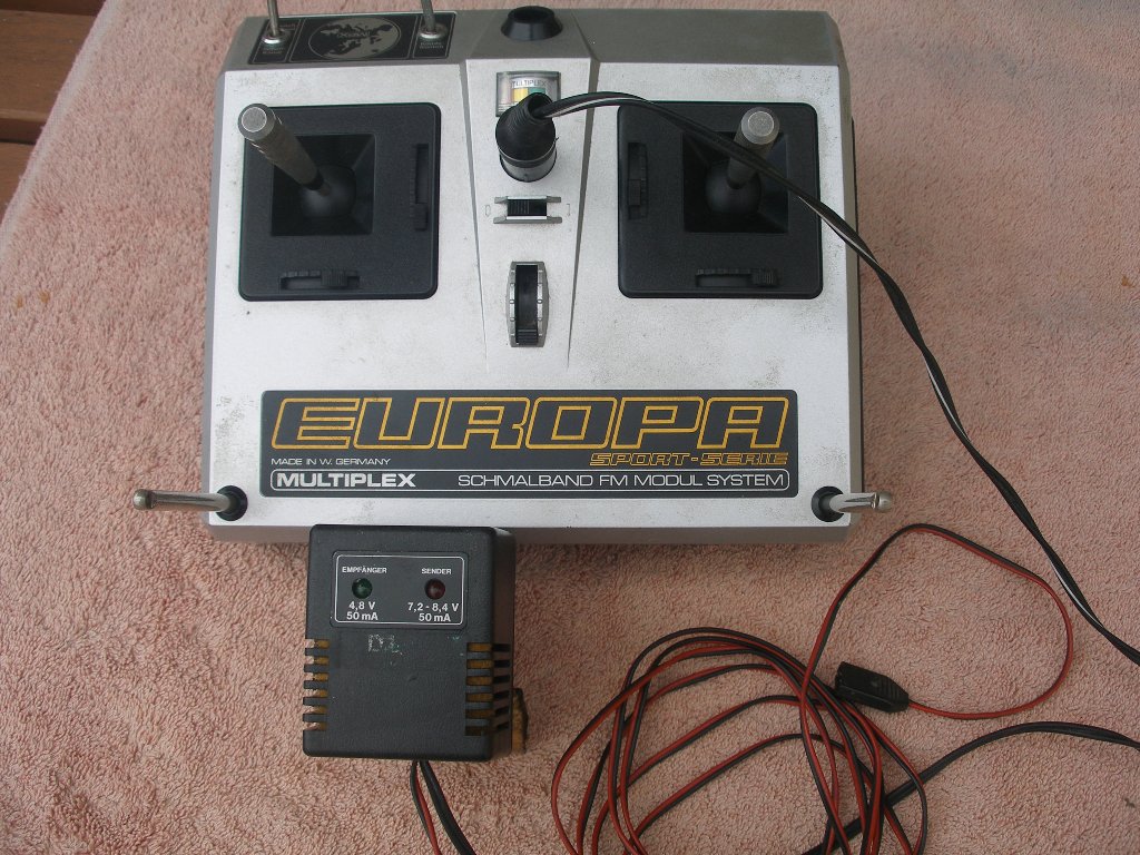 Las imágenes anteriores muestran el cargador abierto, que ya vimos en un artículo anterior y la emisora que utiliza o utilizaba, puesto que nuestro amigo ha renovado su equipo. No obstante, cargador y emisora, después de 37 años, en la factura que he visto, figura como fecha de compra el 24 de agosto de 1983 siguen funcionando perfectamente. Ahora tiene, recientemente adquirida, una emisora de nueve canales a 2,4 gigas y un cargador "Dúo" que puede hacerlo "TODO". Las demás imágenes nos muestran la complejidad de un cargador moderno en comparación con uno antiguo. La nueva emisora, como la mayoría, tiene una protección para evitar que un cortocircuito pueda provocar una avería.