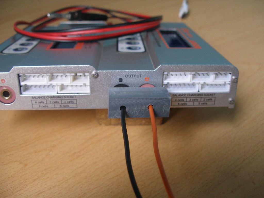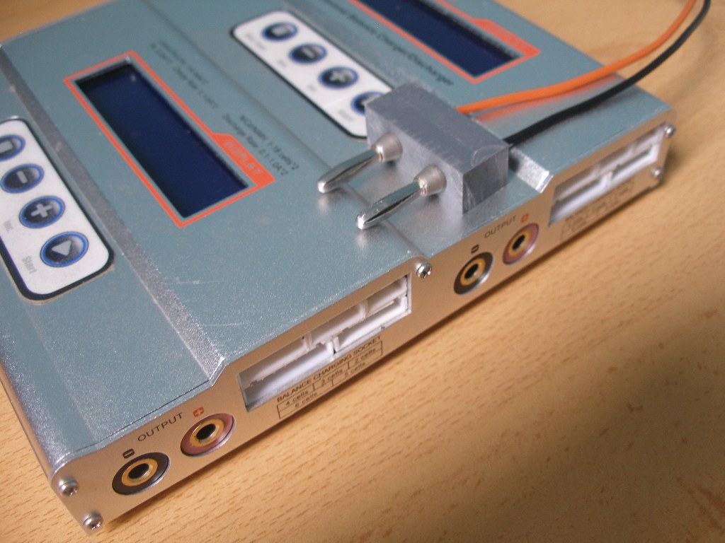 En las imágenes se ven dos cargadores, uno tiene la carcasa de plástico, por tanto no hay peligro de cortocircuito. El otro tiene una carcasa metálica, por tanto conductora, ahí sí debemos tener mucho cuidado de no dejar las bananas, bajo tensión, encima de la parte metálica o que accidentalmente toquen simultáneamente, aunque sólo sea por un breve instante, con un objeto conductor, por ejemplo un destornillador o una llave con la que estemos trabajando.