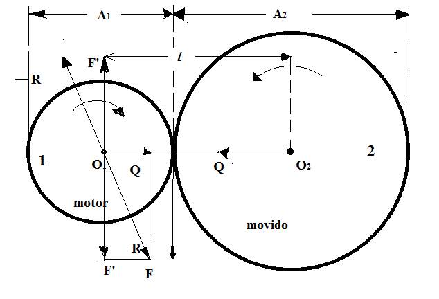Si llamamos A1 al diámetro del cilindro motor y recordamos que F es el esfuerzo tangencial en el contacto, el par motor M transmitido valdrá: