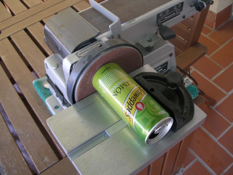 Para construir la caldera tomaremos una lata de refresco vacía y por cualquier procedimiento mecánico, cortaremos el culote o parte inferior de la lata. Repasaremos su borde con una lija o lima, quitando las rebabas que hayan podido quedar y muy especialmente las “puntas” para evitar cortes o pinchazos.