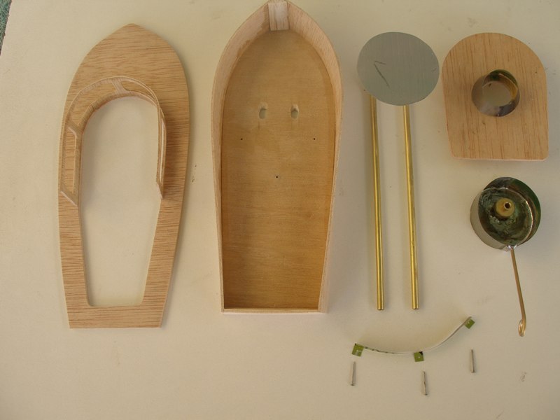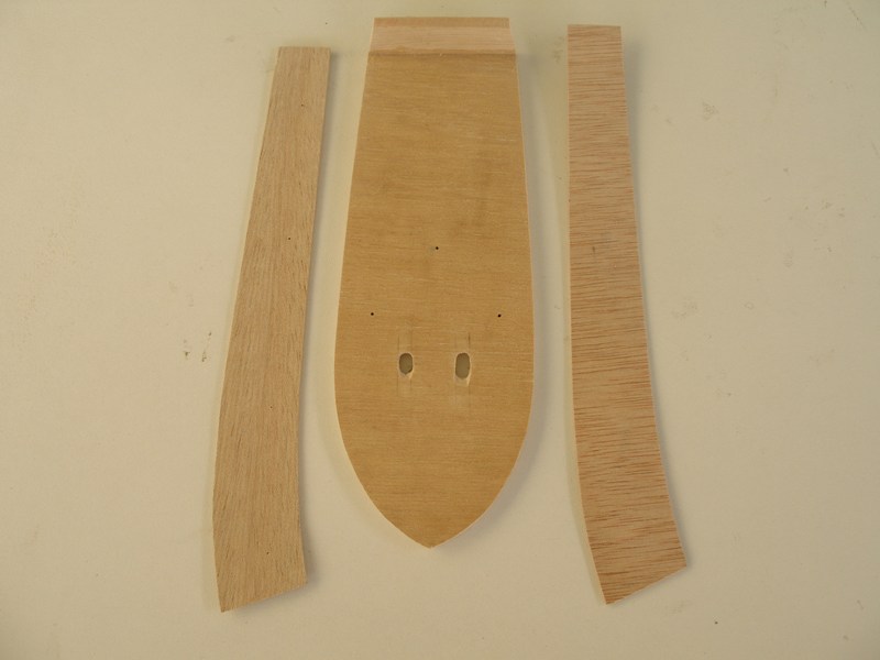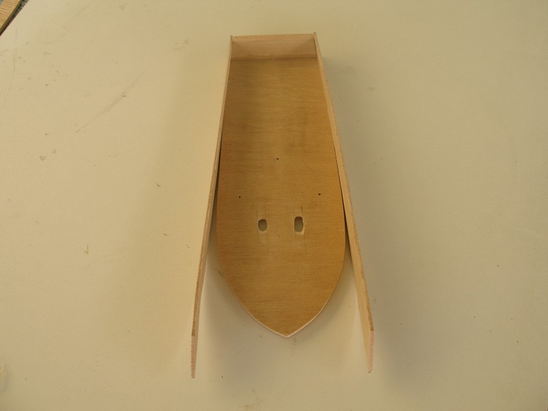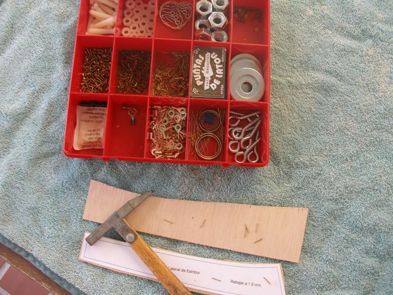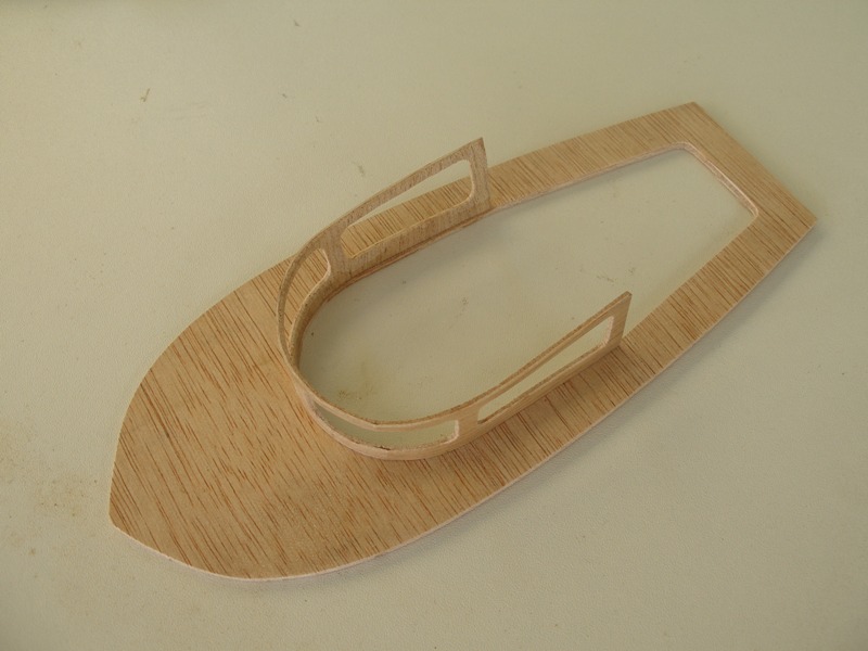 Buscando entre los recortes encontré unos trozos de contrachapado de cinco milímetros para el fondo y la cuaderna de popa, y otros de 3 para laterales, cubierta y cabina. Laterales y cabina se han rebajado a un milímetro y medio consiguiendo así una mejor flexibilidad para que la madera flecte y se adapte a la curvatura del casco.