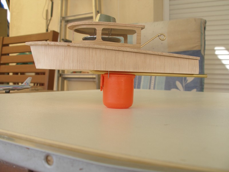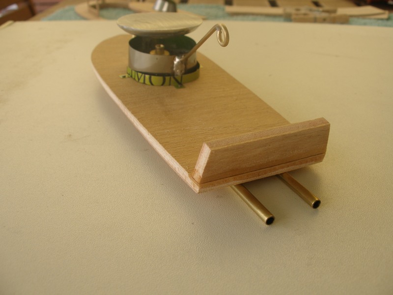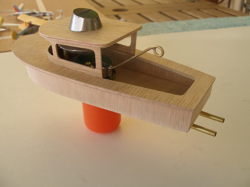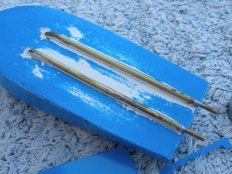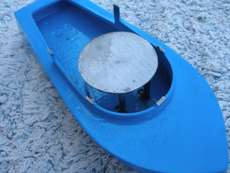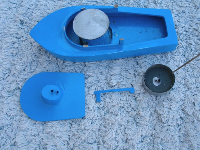 La caldera tiene dos tubos que están sumergidos en el agua, previamente hemos cebado estos tubos introduciendo agua para que salga todo el aire del interior de la caldera y de los tubos, cosa que podremos hacer cómodamente aprovechando una jeringuilla que no utilicemos. Una vez cebado el conjunto caldera-tubos, taparemos la boca de los tubos para que no entre aire y pondremos el barco en el agua, con lo cual los tubos quedaran sumergidos unos cuantos milímetros, no es necesario más.