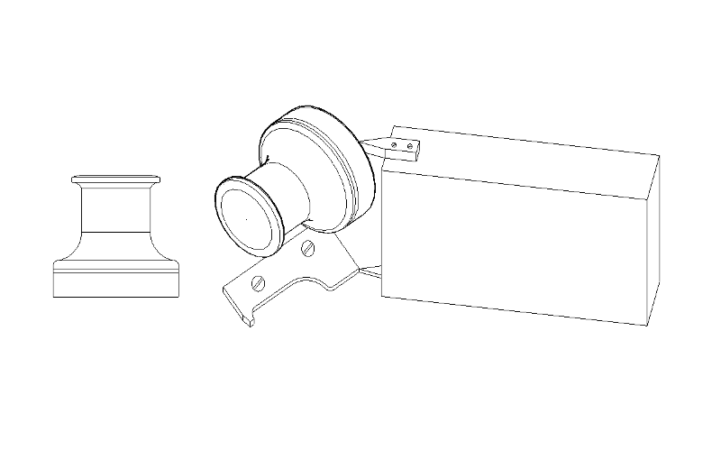 Esto mismo es válido para toneles, poleas, winches y en general todas aquellos piezas que se generan a partir de la revolución de una figura plana. La última imagen nos muestra de forma esquemática esto último. Si necesitamos varios winches para equipar nuestro velero, nos resultará más cómodo elaborar una plantilla, por ejemplo en aluminio o madera, del perfil del mismo, sujetarlo con un par de tornillos en una pieza al efecto sujeta en la base del torno, debidamente alineada con el eje de rotación de nuestro motor y mediante el dispositivo que vemos en la figura, por arranque de viruta, ir torneando la pieza de un redondo, sea de aluminio o madera, obteniendo así nuestro winche, resultando ser una pieza tridimensional.