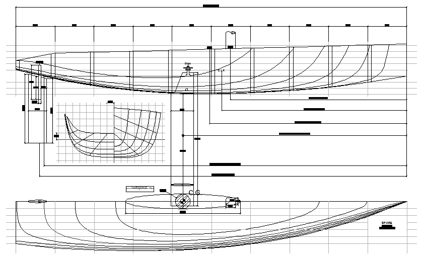 virtuales del mismo y el plano de corte de cuadernas, quilla, timón, etc. Clicando sobre la imagen podemos ver esta ampliada, otro clic y