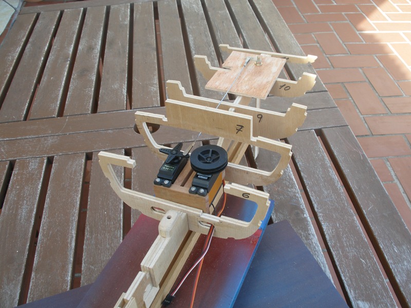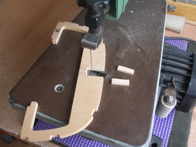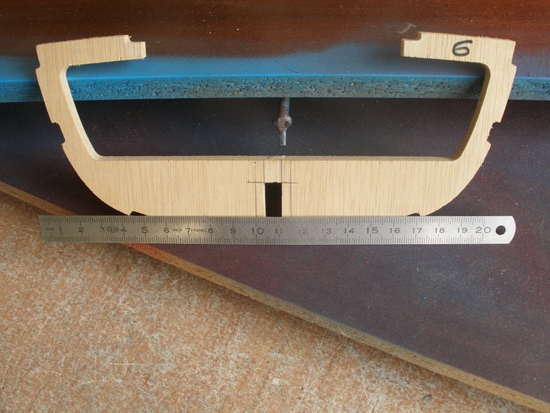 El motivo de hacer el encastre de la cuaderna número 6, en este momento, es sencillamente para poderla montar en la quilla (de momento sin encolar) para poder hacer los ajustes necesarios a las cuadernas 5, 6 y 7 y a la bancada de servos.