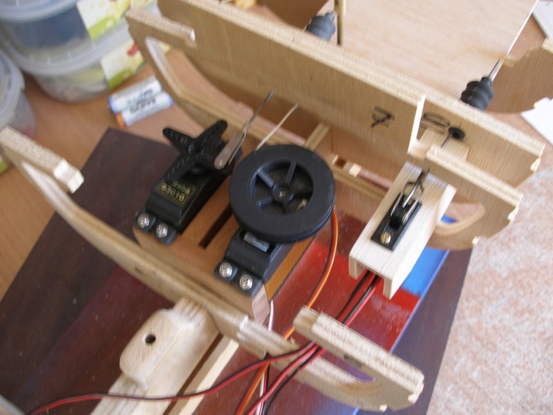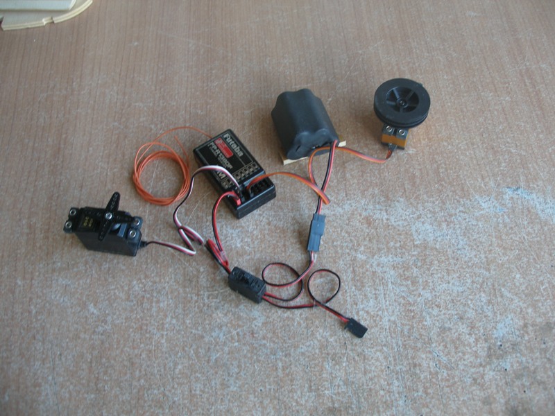 El montaje del equipo radio y su alimentación no es complicado, más bien al contrario, es muy fácil, pero su mayor dificultad radica en una adecuada distribución del cableado. Personalmente, tanto en aviones como en barcos, soy un acérrimo defensor de aquella máxima que nos inculcaron en los años de alumnos de náutica de "La maniobra, siempre clara". He visto auténticas catástrofes, principalmente en aeromodelismo debidas no a la impericia del piloto, sino por cables sueltos que se han enredado en uno de los servos (un aeromodelo equipa como mínimo cuatro servos, aunque hay modelos con tres) lo que ha ocasionado la falta de mando, bien sea en profundidad, dirección, alabeo o gas.
