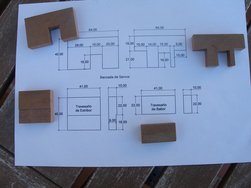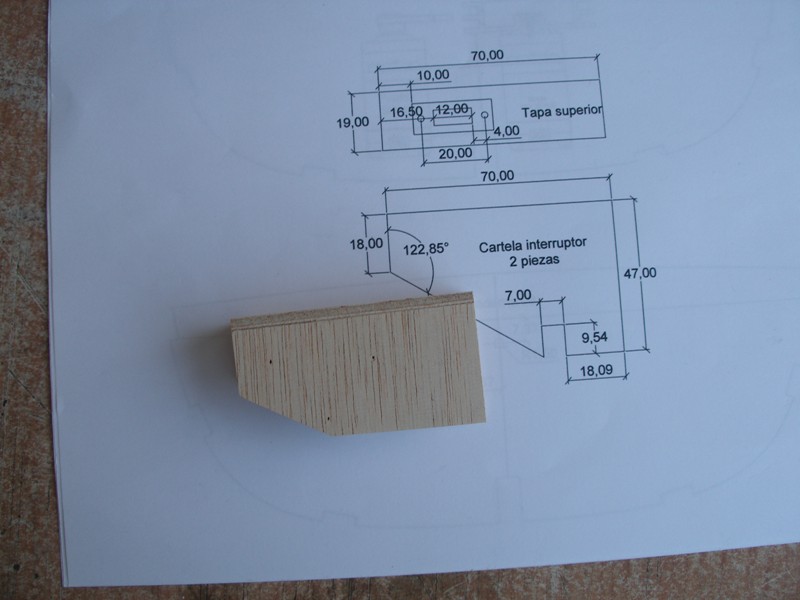interruptor. Este soporte, como se puede apreciar en el plano va encolado en la "varenga" de la cuaderna número 07 y en la propia cuaderna 08.