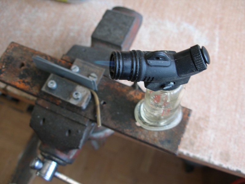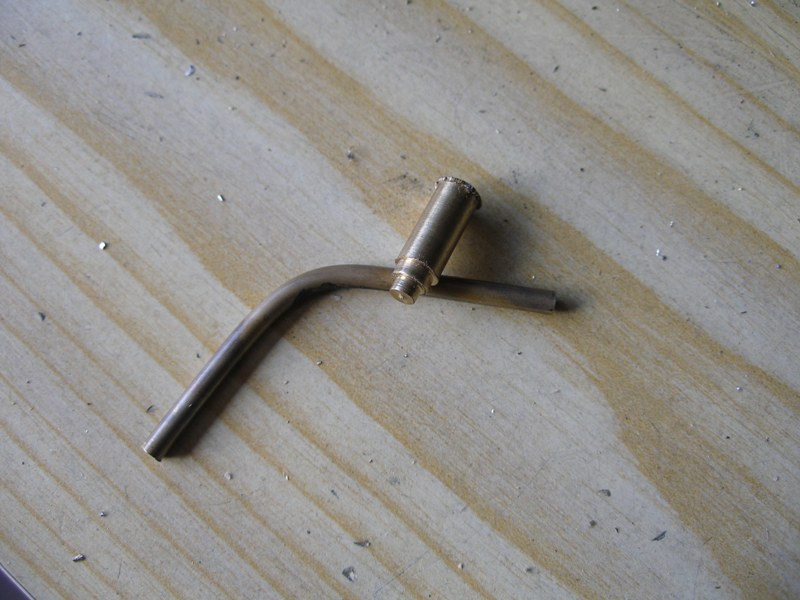Para hacer la salida de la escota de mayor, aprovechamos una curva del depósito de combustible de un aeromodelo a la que, mediante calor, rectificamos su curvatura para que ambas ramas rectas quedase perpendicular la una con respecto a la otra, es decir, a 90 grados.
